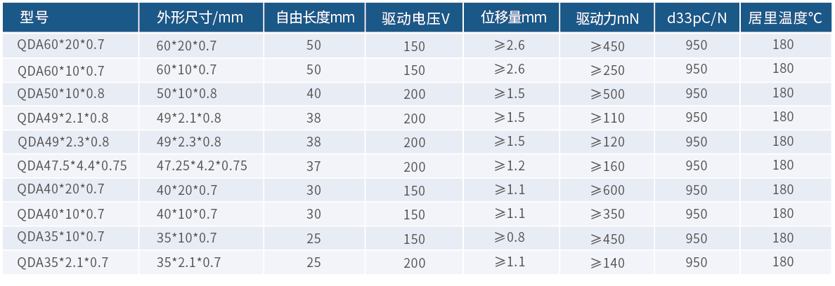 利用壓電陶瓷的逆壓電效應(yīng),在電場的驅(qū)動下產(chǎn)生橫向位移的彎曲元件。結(jié)構(gòu)上采用兩片壓電陶瓷及高韌性彈性芯緊密粘接而成,在交變電源的驅(qū)動下產(chǎn)生相應(yīng)的振動幅度,應(yīng)用于微位移驅(qū)動裝置。