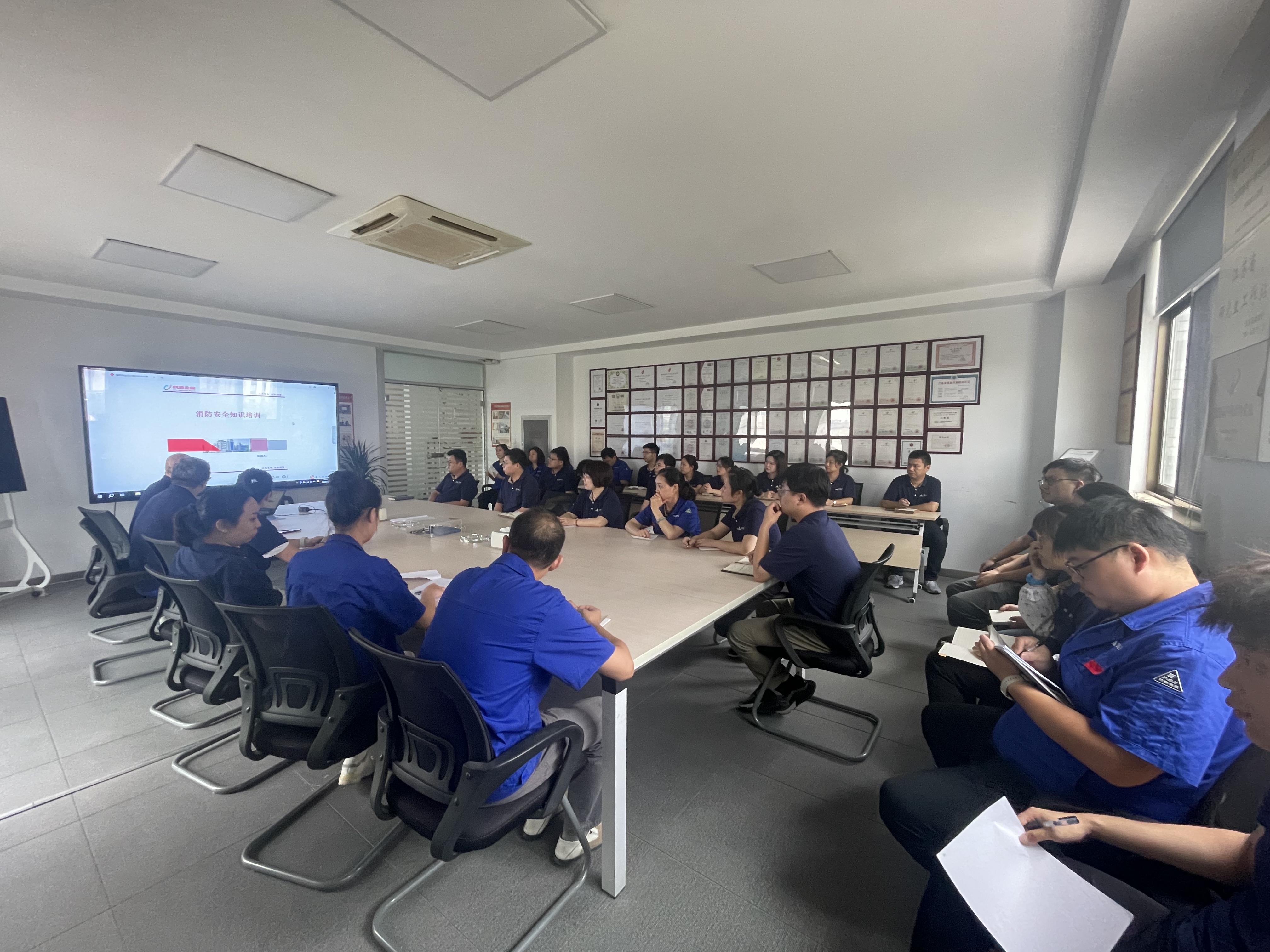 培訓(xùn)中,生產(chǎn)保障部樊寶權(quán)經(jīng)理通過PPT演講、播放消防短片以及消防實(shí)物展示等形式,詳細(xì)講解了常見火災(zāi)的種類、原因及相關(guān)預(yù)防措施和逃生措施。讓職工認(rèn)識到火災(zāi)的危險性和預(yù)防的重要性。理論知識培訓(xùn)完畢,對職工們當(dāng)場進(jìn)行了相關(guān)消防安全知識考試,對提高職工消防責(zé)任意識和安全意識起到了強(qiáng)化作用。