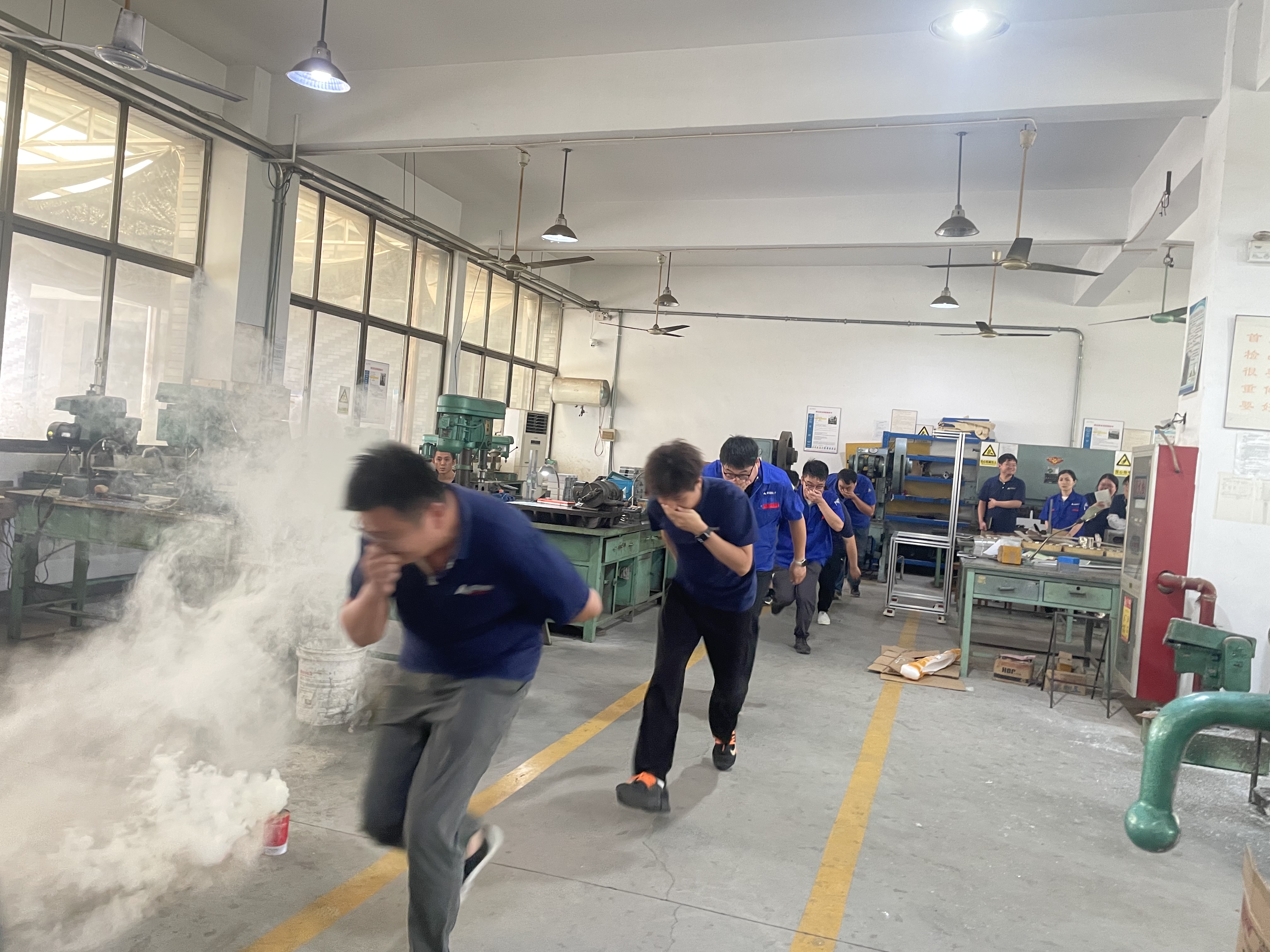 理論與實(shí)踐相結(jié)合,培訓(xùn)考試結(jié)束后,大家來到了車間。員工們在模擬煙霧環(huán)境中體驗(yàn)了正確的逃生方法,按照所學(xué)技巧,捂住口鼻,低姿前行,有序撤離“火災(zāi)現(xiàn)場”。通過這一環(huán)節(jié),職工們不僅學(xué)到了實(shí)用的逃生技能,還增強(qiáng)了在緊急情況下的心理素質(zhì)和應(yīng)對能力。